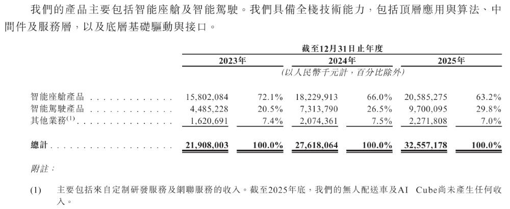 从占收入比例来看,在2025年,德赛西威的智能座舱产品占总收入的63.2%,智能驾驶产品占总收入的29.8%,其他业务占总收入的7%。