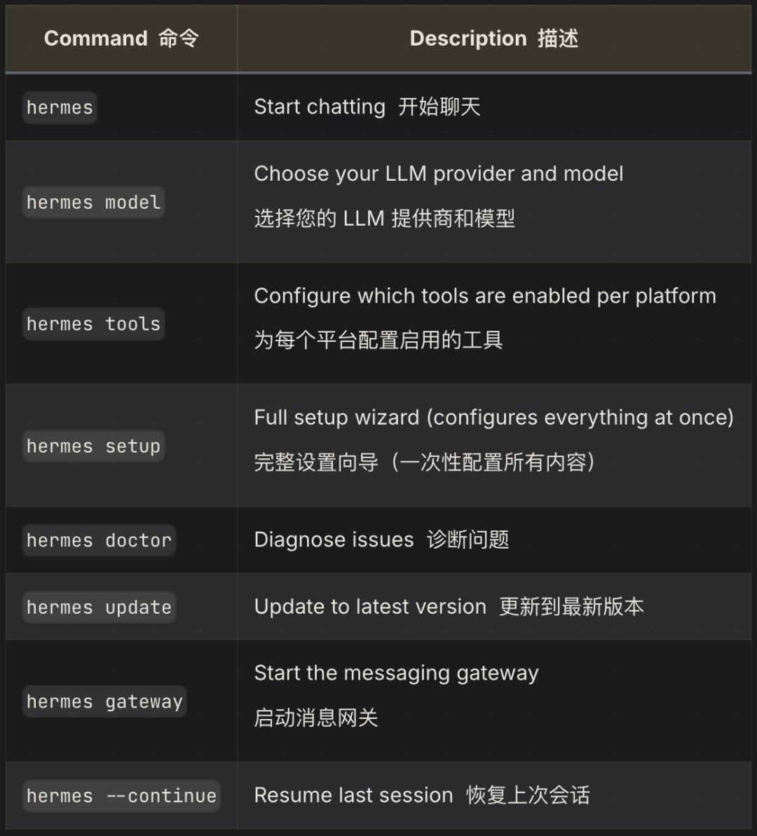 文档链接:https://hermes-agent.nousresearch.com/docs/getting-started/quickstart