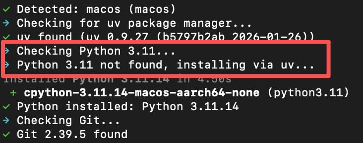 不必担心环境问题,什么Python、Node.js,缺了啥Hermes Agent都会自己帮你装好。