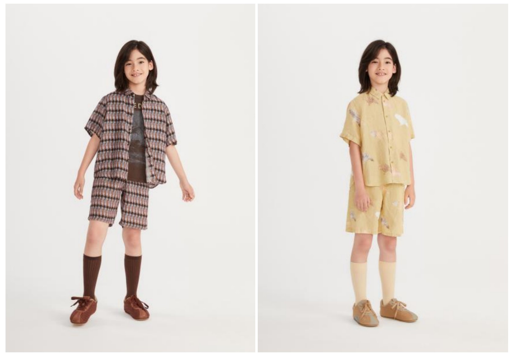 设计细节上,亚麻面料辅以丰富的印花与色彩,同面料套装设计,清爽体感,满足夏日全天候需求,其环境负担极小,适配夏季户外与日常休闲场景。