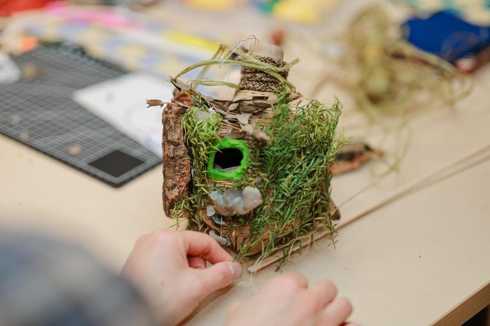 3月28日,蓬马邀请小蓬友们到jnby+天目里店参与“自然守护者”环保鸟屋艺术家工坊活动。在独立艺术家蔡滨荟的带领下,自然材料、剩余面料、回收物品在小蓬友们手中逐渐成型,变成形态各异的艺术鸟屋。这些承载着对鸟类与自然的关心和守护的作品,也在中国湿地博物馆“自然守护者”可持续艺术展中正式展出。