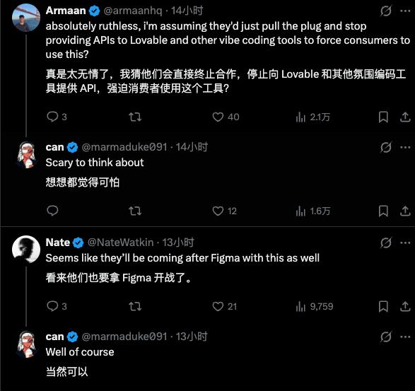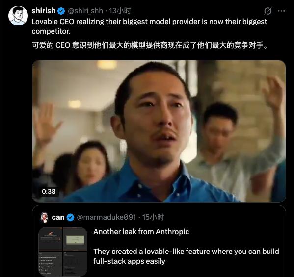 这样看 Anthropic 这些做法就完全不新鲜了,看着 Cursor 用 Claude 的 API 做 vibe coding 火了,看着 Lovable 用 Claude 的 API 做无代码开发火了,然后把这些功能还愿到自己的产品里即可。用户有了更丰富的功能,投资人有了更漂亮的业务范围。