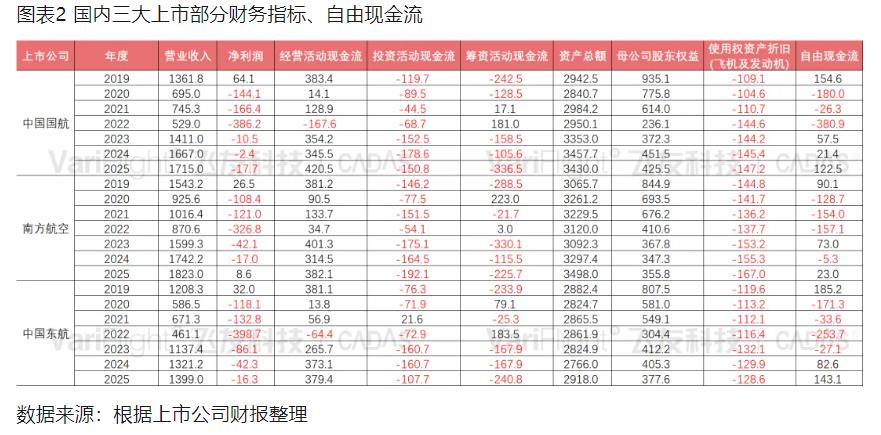 2025年三大航业绩明显分化,南航盈利8.57亿元,成为疫情后首家年度扭亏的骨干航司;但国航亏损17.7亿元、东航亏损16.33亿元,仍未走出亏损区间,整体抗风险能力依然薄弱。