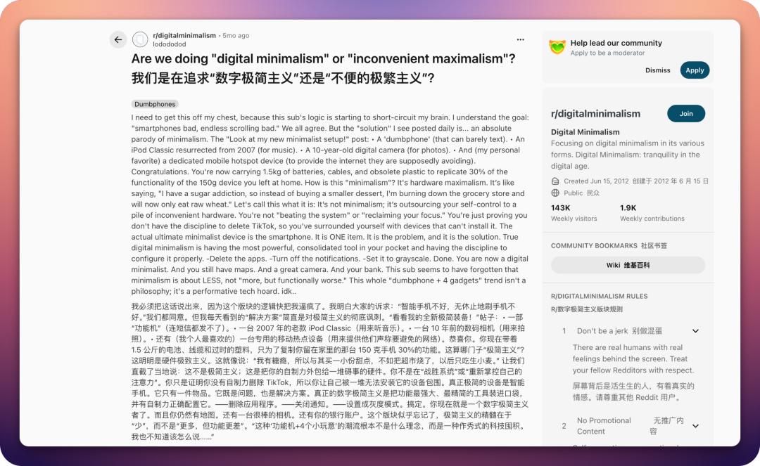 一款以「反注意力收割」为卖点的产品,反倒被注意力收割机吞并了。这大概就是活成了自己的笑话、屠龙者终成恶龙、逻辑闭环了吧……