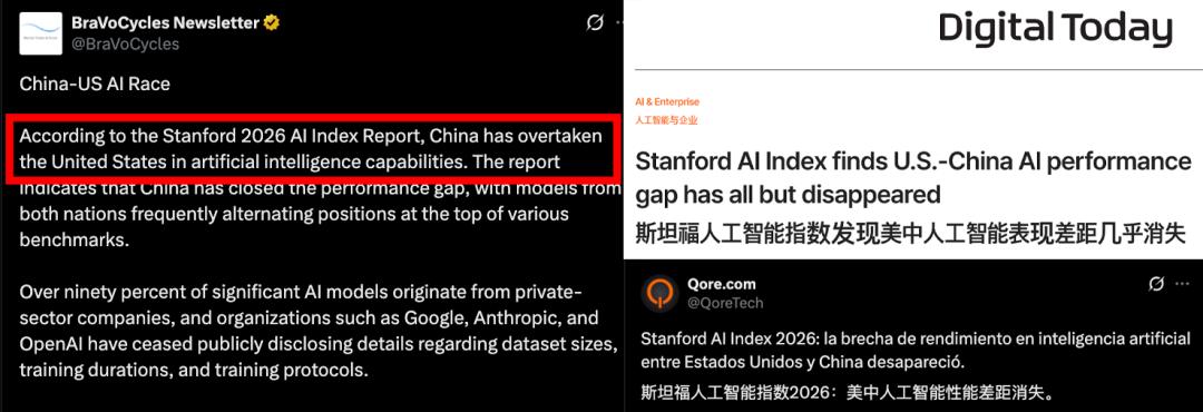 多家外媒在分析报告时提到,在AI领域,中国与美国的差距几乎已经消失。