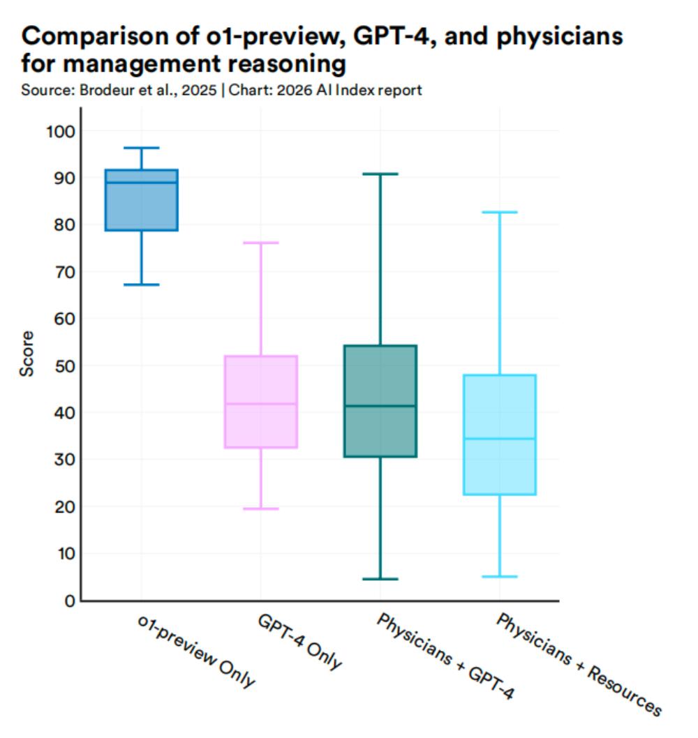 在实验评估中,OpenAI的o1-preview已经超越了大多数现有的真人医生的临床推理基准,但它们反映的是孤立的认知评估,而非现实世界的临床整合。