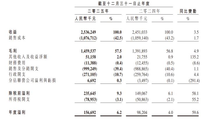周黑鸭(01458.HK)同样受惠于鸭价红利。年报显示,2025年,周黑鸭的净利同比增长59.60%至1.57亿元。这一年里,公司的整体销量增长14.60%至29977吨,但由于产品原材料成本下降叠加供应链效率优化,公司整体销售成本仅微增1.7% 。