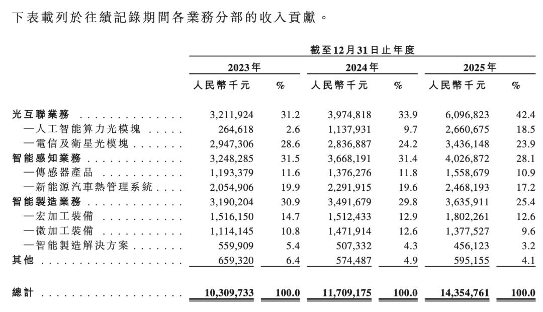 根据招股书,光联接业务已取代激光(即智能制造业务),成为公司第一大收入来源,占比超42%。它不再仅仅是那个帮工厂切钢板的“大力士”,而是变成了帮数据中心传输数据的“极速飞人”。