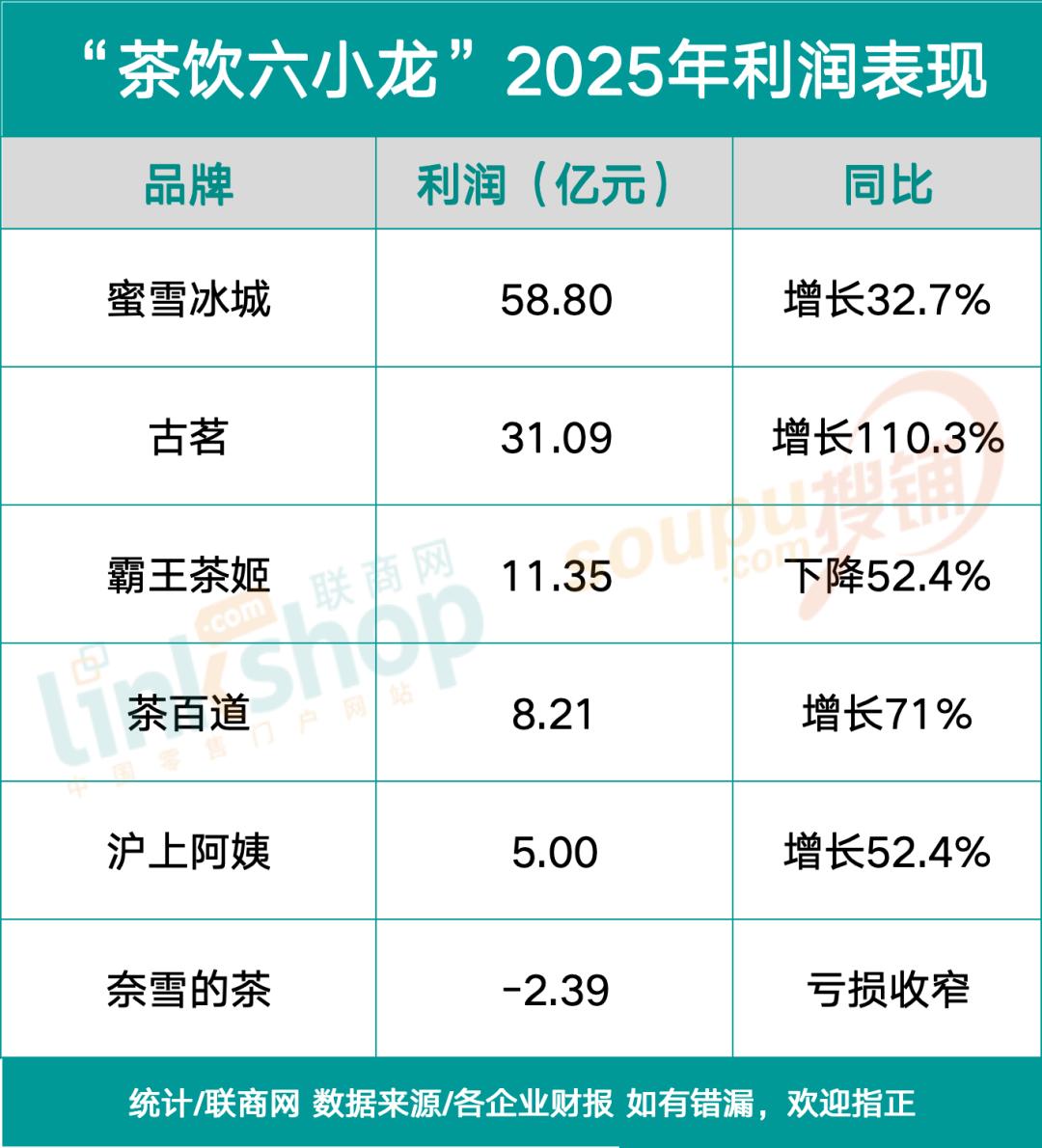 随着蜜雪冰城、古茗、霸王茶姬、茶百道、沪上阿姨、奈雪的茶这六家上市企业2025年财报全部出炉,一幅冰火两重天的行业版图非常清晰地呈现在消费者面前。从财报中我们可以看出,有的品牌利润狂飙,有的则陷入亏损泥潭,有的战略判断失误付出了惨重代价。