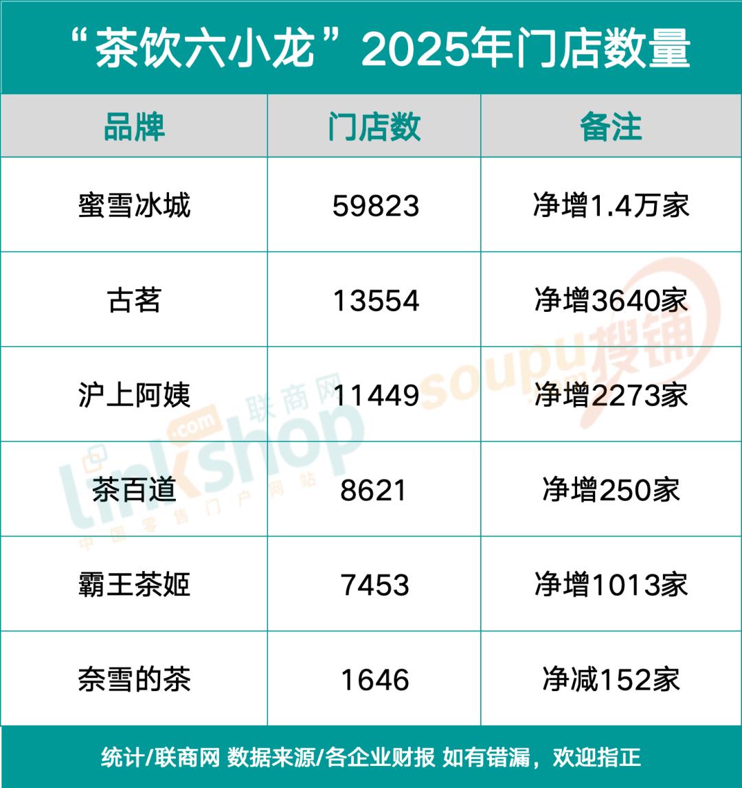 蜜雪冰城以6万家门店的体量守住了规模王座,但单店盈利压力需要持续关注。
