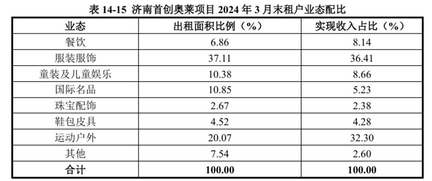 中金唯品会REITs底层资产宁波杉井奥特莱斯,核心零售占比同样稳定在75%~80%,餐饮及配套严格控制在20%以内。