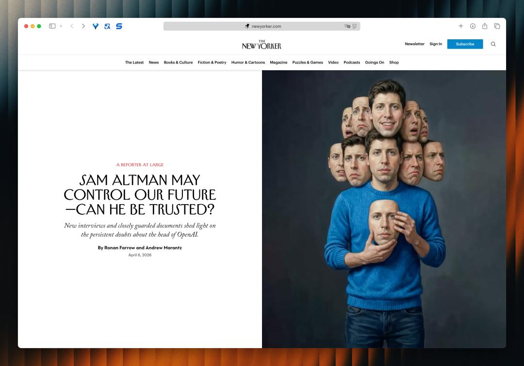 袭击发生前,萨姆·奥尔特曼已深陷新一轮的舆论风波。《纽约客》杂志刊发长文《Sam Altman May Control Our Future, Can He Be Trusted》,将他多年来的权力野心、控制欲与诚信争议重新推至台前。