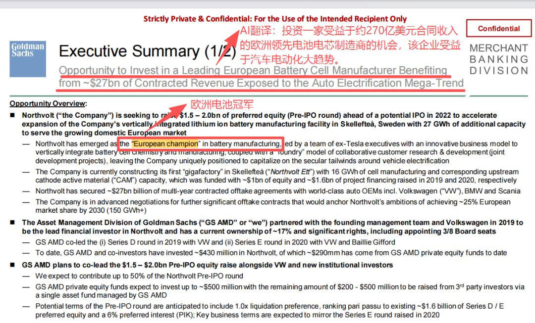 图片来源:高盛发给本文投资者的 欧洲 “电池冠军”电动车电池项目的介绍文件