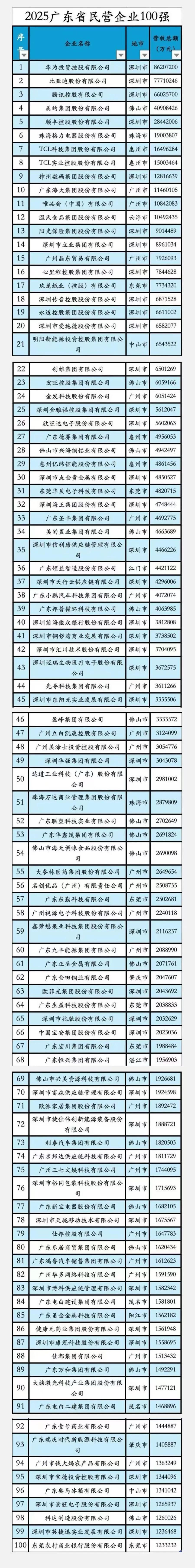 广东民企100强,又出炉了!