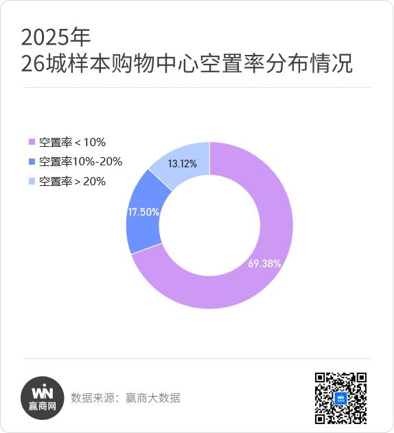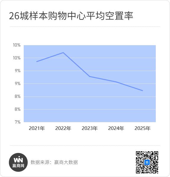 据赢商大数据监测,2025年,全国重点26城600+样本购物中心平均空置率,创下近五年新低。