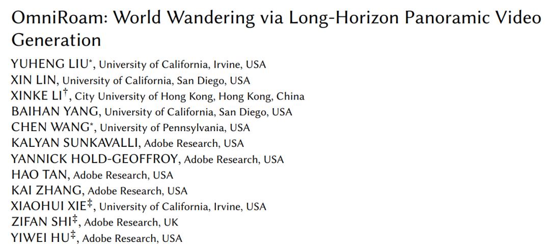 近日,来自 University of California, Irvine、University of California, San Diego、City University of Hong Kong、University of Pennsylvania 以及 Adobe Research 的研究者共同提出了 OmniRoam,一种面向轨迹可控长视频生成的新方法。