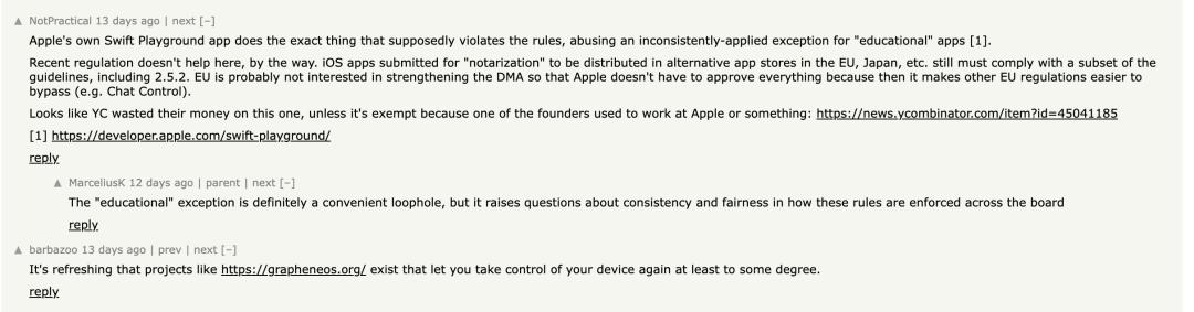 有评论直言,“‘教育’例外条款更像是一个方便的漏洞”,而真正的问题在于苹果是否在选择性遵守规则。