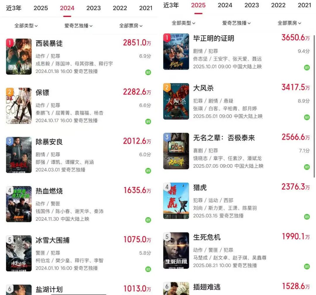 具体来看,爱奇艺的降本手段之一,是大力推行电影分账模式,即平台不再预付版权费,而是根据影片实际播放量与合作方分账。这一模式确实降低了前期现金支出,但也带来了明显的副作用:愿意接受分账的片方多为中腰部内容或缺乏市场号召力的项目,而真正能够拉动会员付费的热门IP,版权方仍倾向于高价买断模式。