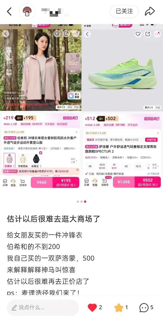 户外大牌曾是专柜与旗舰店的“专属常客”,动辄数千元的定价,成为新中产户外爱好者的“身份标签”。但今年,风向已然逆转——折扣店、奥特莱斯、品牌特卖平台,正成为年轻户外玩家的“新聚集地”。500元的萨洛蒙、半价的冲锋衣、三折的徒步鞋,不再是偶发的“捡漏”,而是常态化的消费选择。