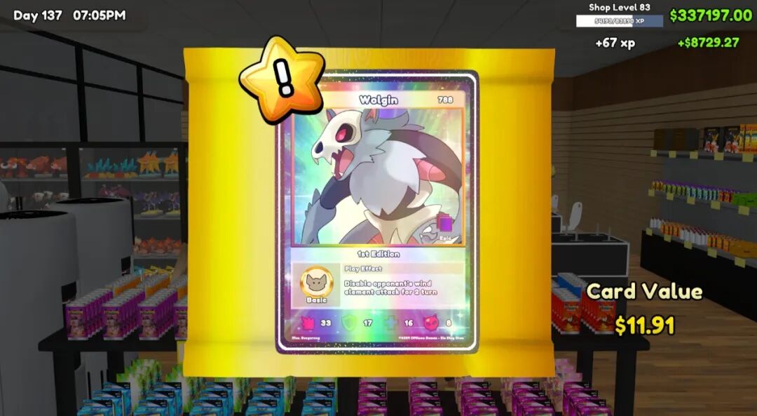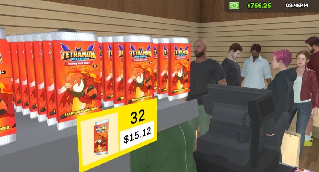 就拿《TCG Card Shop Simulator》来举例,它本质是把“拆卡包”这个具备天然爽感的环节嵌进模拟经营的框架里。拆卡包的爽感是入口,把一家店铺从小做大的成就感和其中的策略乐趣则负责留住玩家。