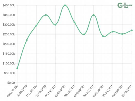1999年初版全息喷火龙神奇宝贝卡的交易价格在进入2020年后激增(数据&图源:Card Ladder)