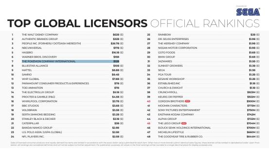 宝可梦已经是全球第七大授权零售品牌(数据&图源:Licence Global)