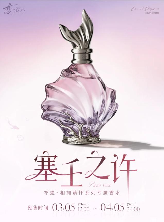 《2025闲鱼谷子趋势报告》显示,2025年第一季度,《恋与深空》已经成为国产IP销量TOP1。25年7月,《恋与深空》主题戒指上线。这款限时折扣价为228元的戒指,在48小时内预售金额突破了4000万元。2026年,吸金神话还在继续。3月,男主之一祁煜的“相拥萦怀”系列专属香水“塞壬之许”开启预售,据不完全统计,一个月预售金额已经超过3000万。
