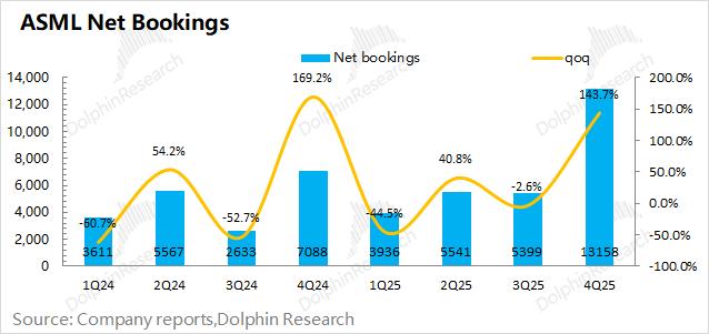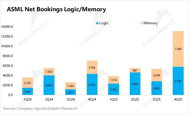 阿斯麦的订单多数时间对股价的“控制力”远强于收入。在存储和逻辑厂都纷纷上调资本开支的情况下,这不会形成立即的拉货,但会直接反映在订单之上。