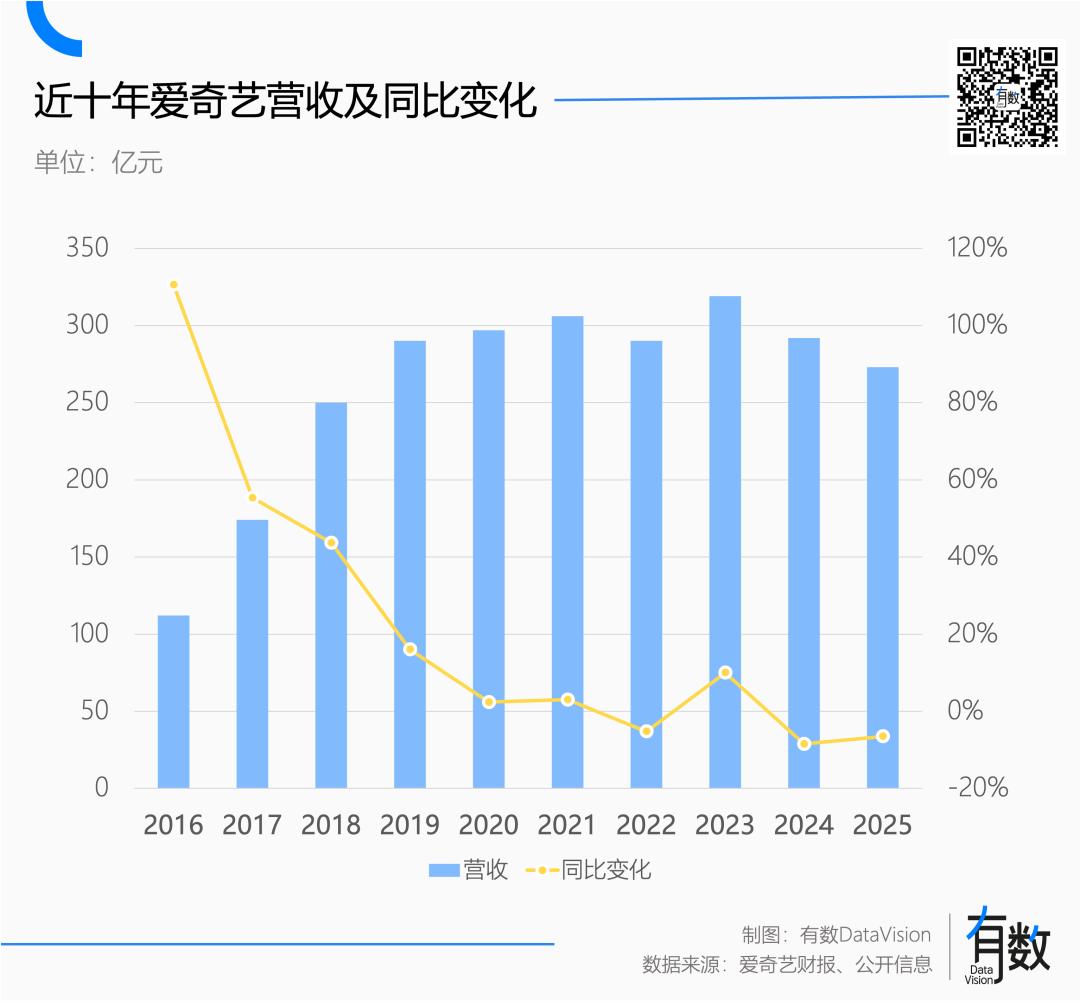 同期爱奇艺财报发布,2024年,爱奇艺营收同比下滑8%,2025年继续下滑了7%,确实让人闹心。