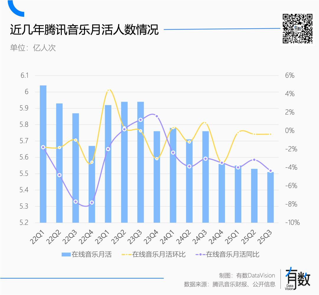 同时,2024年后,腾讯音乐的付费用户也进入了一个稳定区间。和长视频一样:愿意花钱听音乐的人,翻来覆去也就这么多了。