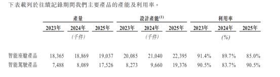 三是,智能座舱产品产能利用率已连续两年回落——从2023年的91.4%降至2024年的89.7%,再到2025年的85%。然而公司仍在激进扩产:2025年资本开支达18.03亿元,本次H股募资也将继续用于产能扩充。