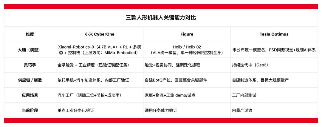 曾经抢跑特斯拉的小米,如今已从先行者变成追赶者。过去几年里,特斯拉持续迭代 Optimus,Figure等新玩家也迅速崛起。