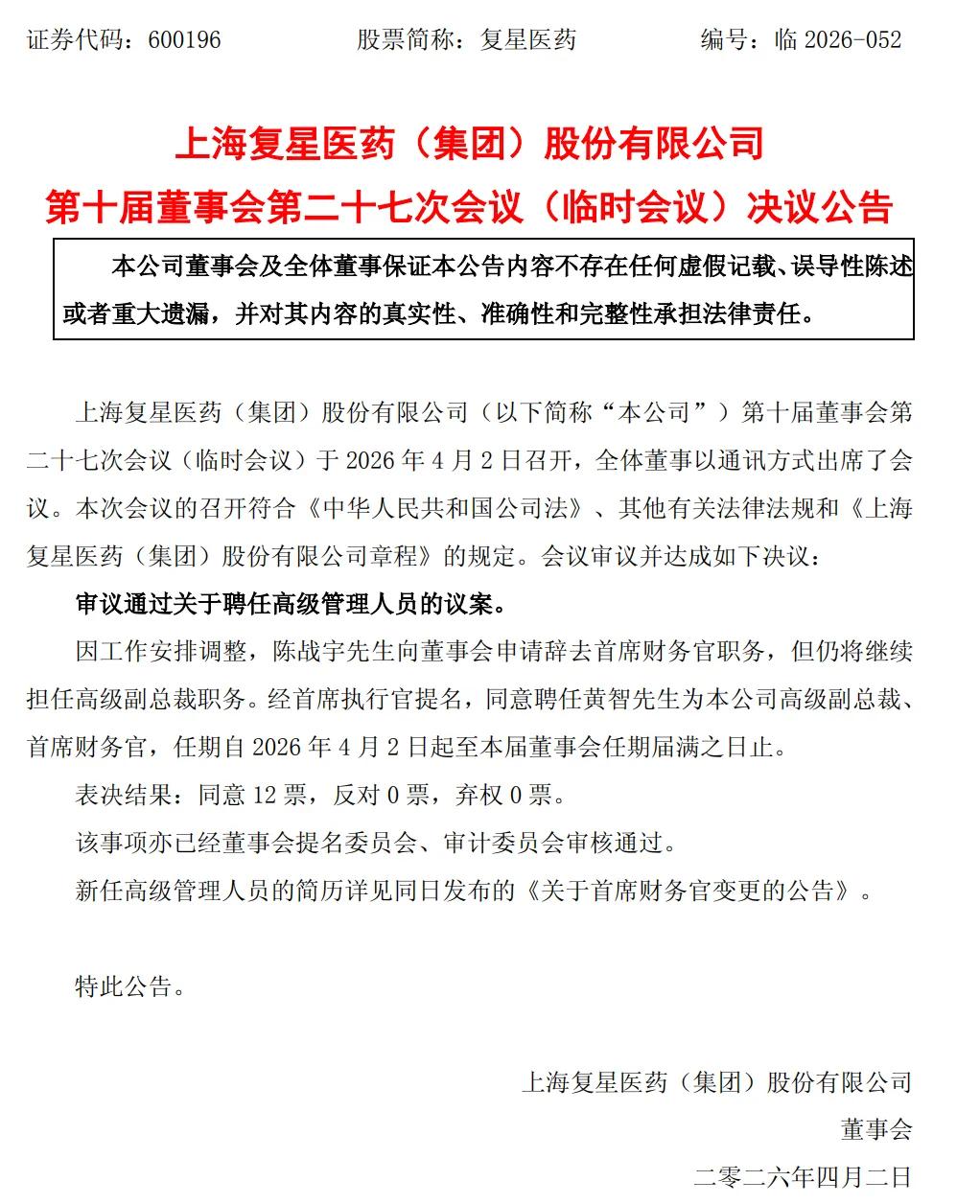 (图源:复星医药 决议公告)