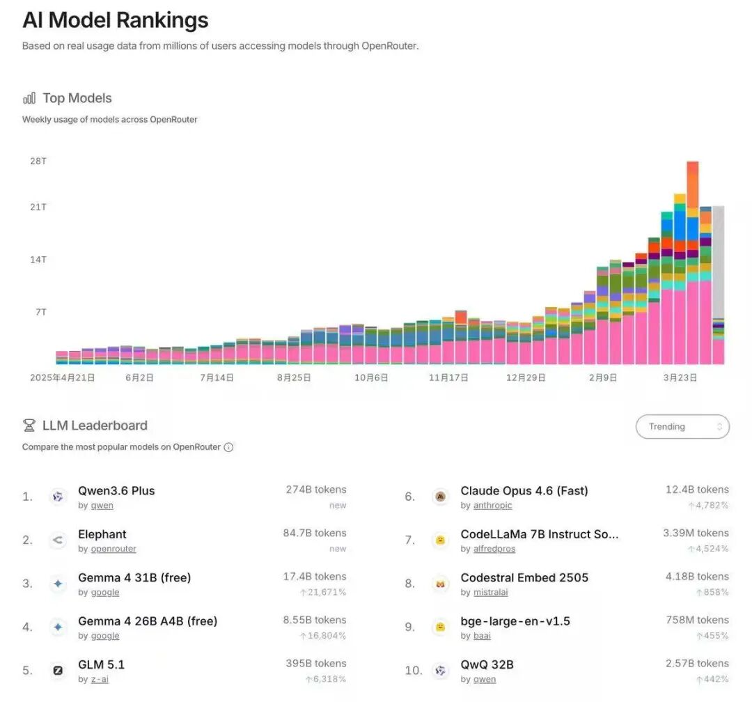 这两天,OpenRouter 一个名为“Elephant”(大象)的模型,Trending 榜排名突然超过 Gemma 4 31B,位列排行榜第二名。