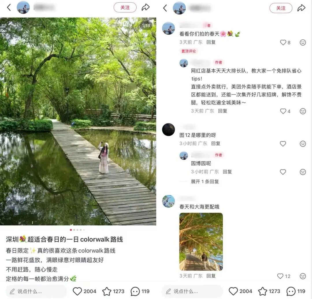 例如有网友分享了深圳超适合春日的一日colorwalk路线,从路线到美食还有文化创意园,并且这些地方离得不远,骑车或者步行走走拍拍一天,含氧量💯。