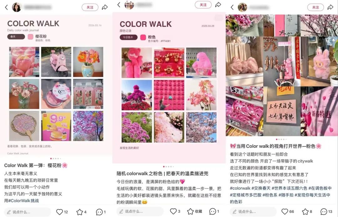 打开小红书,“ColorWalk”笔记铺天盖地,从城市街拍到乡间小路,从独自漫步到闺蜜同行,内容多种多样。