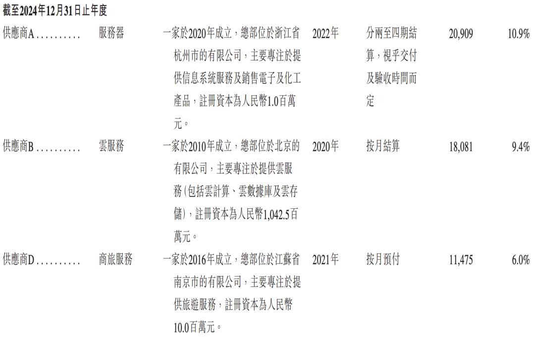 供应商方面,其主要包括服务器提供商、云服务商(如阿里云、腾讯云等)、IDC服务商、差旅管理商、房产租赁公司等。
