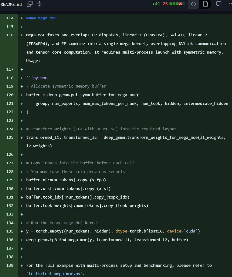 不过,此次更新,我们看到了一个新东西:Mega MoE。