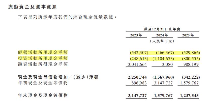 2023-2025年,其经营现金流分别净流出5.42亿元、4.66亿元和5.3亿元;投资现金流分别净流出2.49亿元、11.05亿元和8亿元。