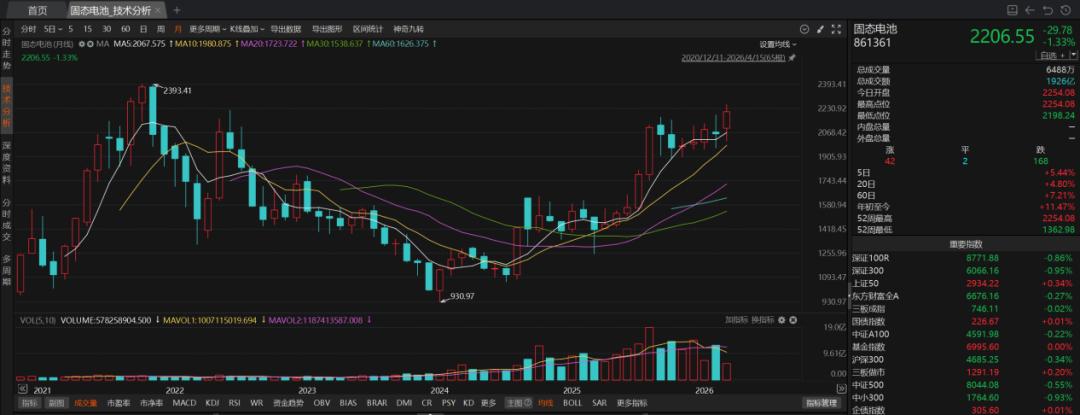 事实上,在东财固态电池指数这轮暴涨前,它也经历过从2393.41点暴跌至930.97点的深度回撤。只要赛道的硬伤还没有出现明确的解决路径,市场情绪未来会不会再来一次反转,谁都不敢打包票。