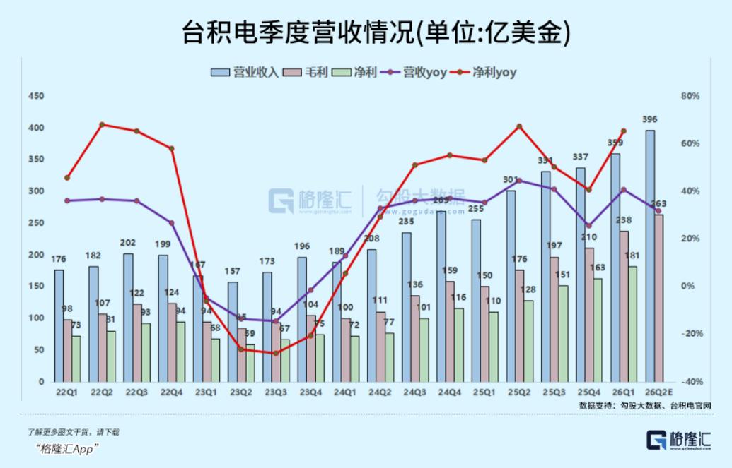 在传统制造业看来,超过60%的毛利率通常只存在于奢侈品或高度垄断的医药行业。但台积电Q1毛利率冲上66.2%,且Q2指引最高触及67.5%,这背后并非简单的“涨价”二字可以概括。