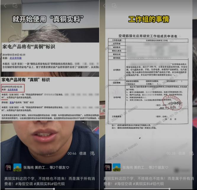 海信方面反应迅速。海信空调国内营销中心品牌总监杨万手(杨祥玺)发布视频回应称,“真铜实料”早在2016年就被海信、长虹等品牌使用,并非格力原创,这四个字“不姓格也不姓朱,而是属于所有中国人”。