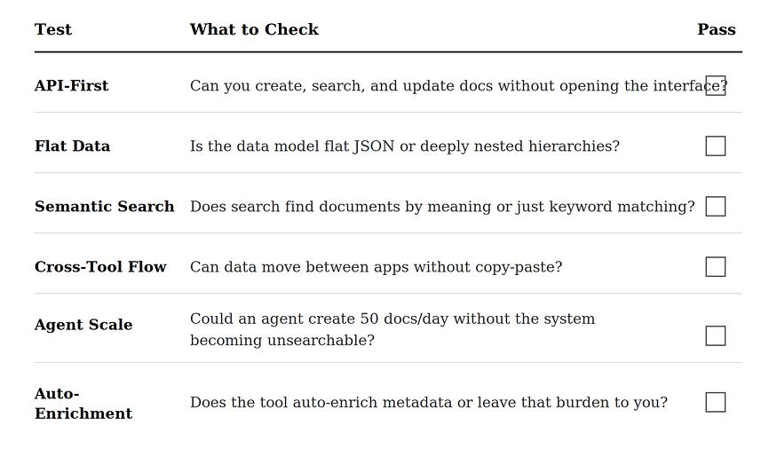 在决定使用任何知识管理工具之前,请务必按照这份清单进行检查。如果它未能通过两项以上检查,那么其人工智能功能只是掩盖缺陷架构的装饰。