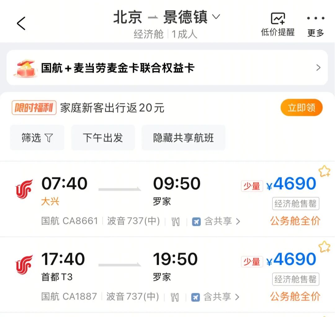 办公室的张姐这个五一原计划去景德镇,但是现在北京直飞景德镇的价格是这样的: