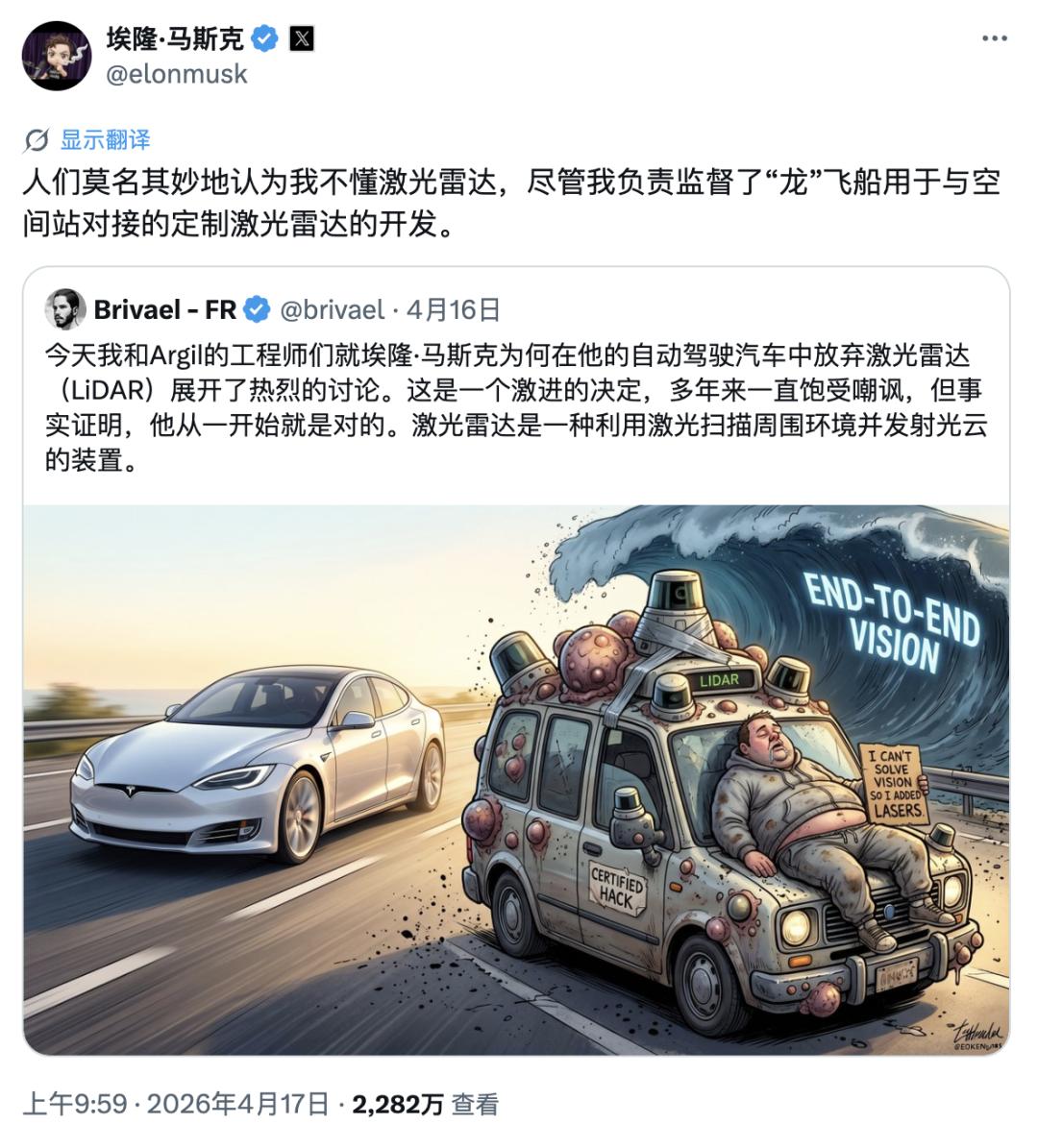言外之意就是,没有人比我马斯克更懂激光雷达。