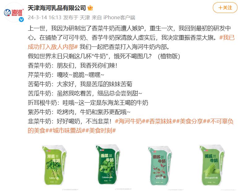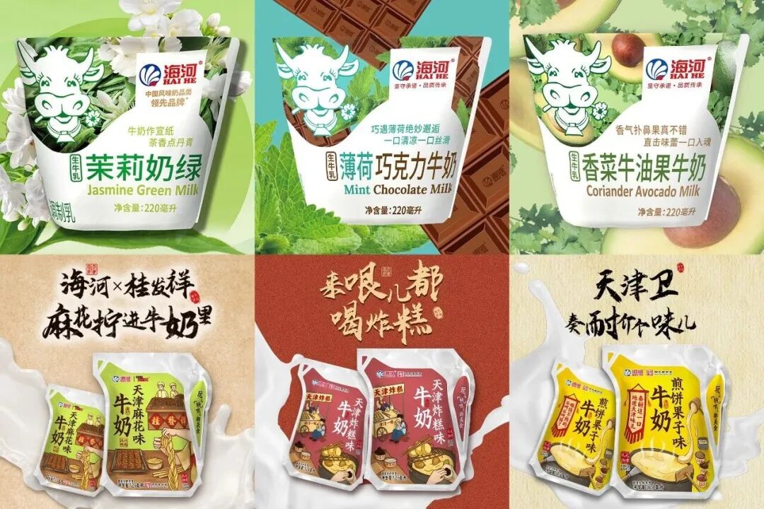 通过充满话题性的口味创新,海河把平平无奇的牛奶做成了内容产品,迅速占领了年轻消费者的心智。