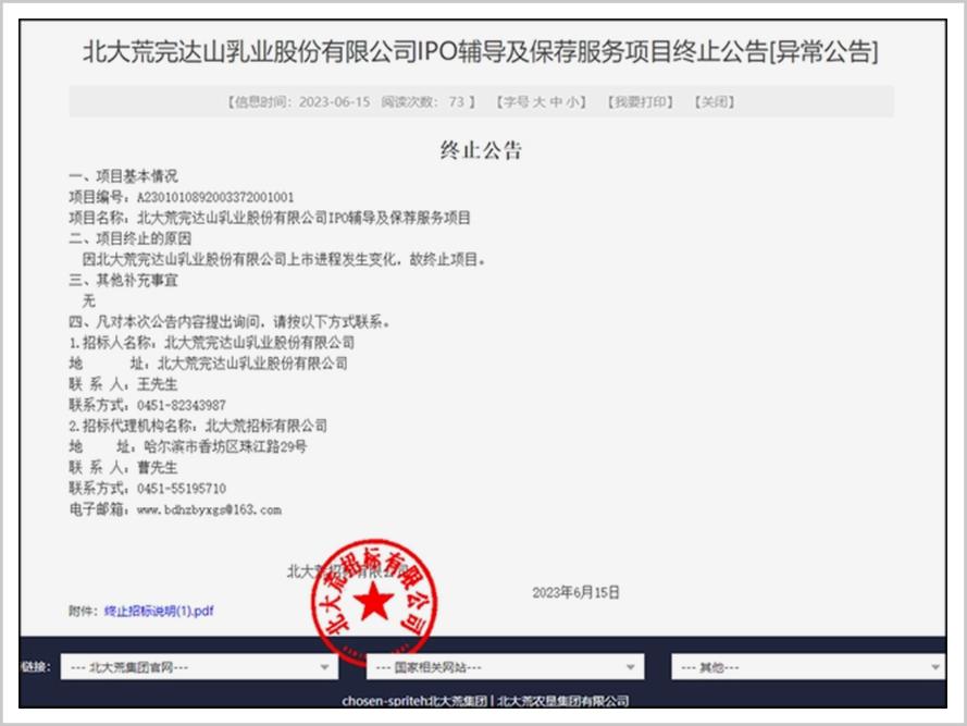 河北完达山贝兰德乳业,因低价竞争、长期亏损,被法院裁定破产清算;