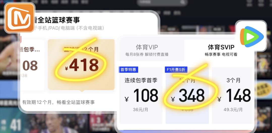 同时腾讯还把 NBA 版权分销给了咪咕视频,想要观看所有篮球比赛的篮球通,月卡价格跟腾讯体育 SVIP 一模一样。