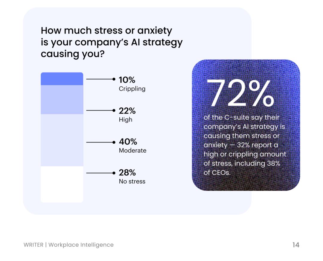 72% 的员工有或多或少感受到 AI 的压力|图源:WRITER