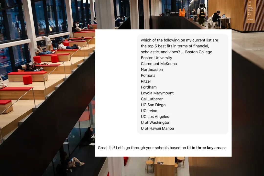 旧金山的学生 Tanay 则看透了 AI 给的虚假情绪价值,他的 AI 和他说「你 100% 能进普林斯顿」,他立刻意识到,AI 是用过度肯定来迎合他,对他的择校决策毫无帮助。